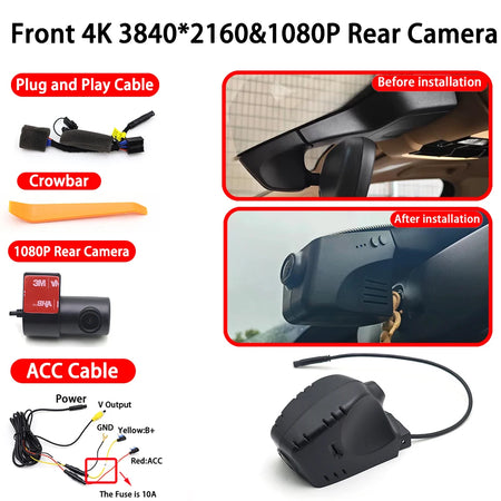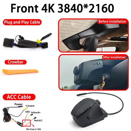 Oplev plug-and-play selvtillid med Porsche Carrera Dashcam 4K Front og Bag WiFi Plug and Play. Dette dual-kamera system er designet til udvalgte Porsche modeller og leverer ultra-klare front 4K optagelser og bag 1080p video (bagoptagelse er valgfri), mens det forbliver diskret og utrolig nemt at installere. Ingen kompliceret omkabling—bare tilslut og kør.