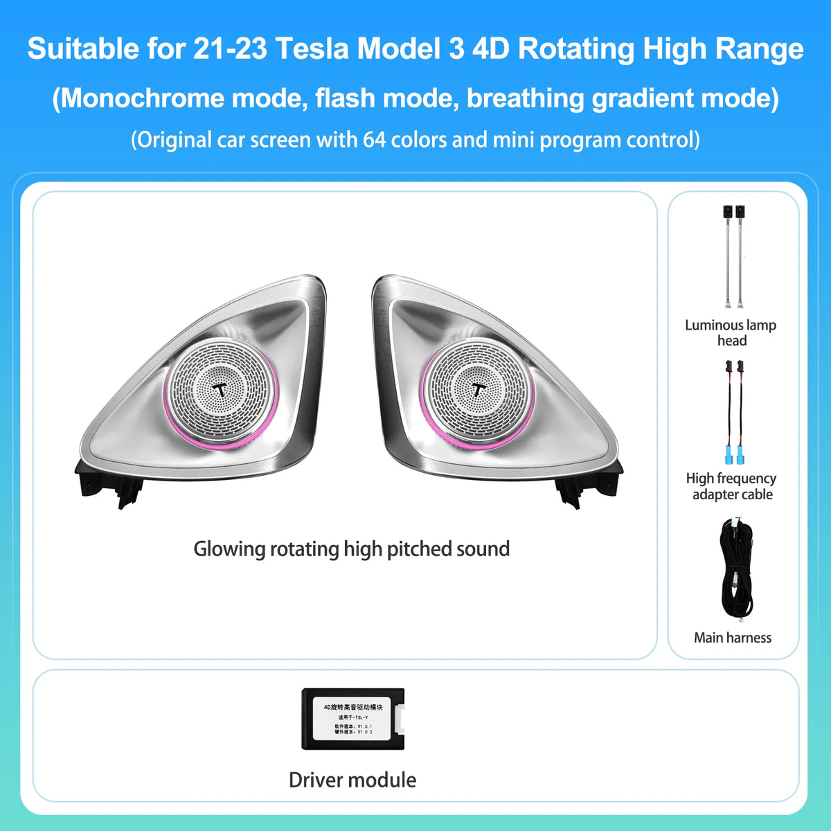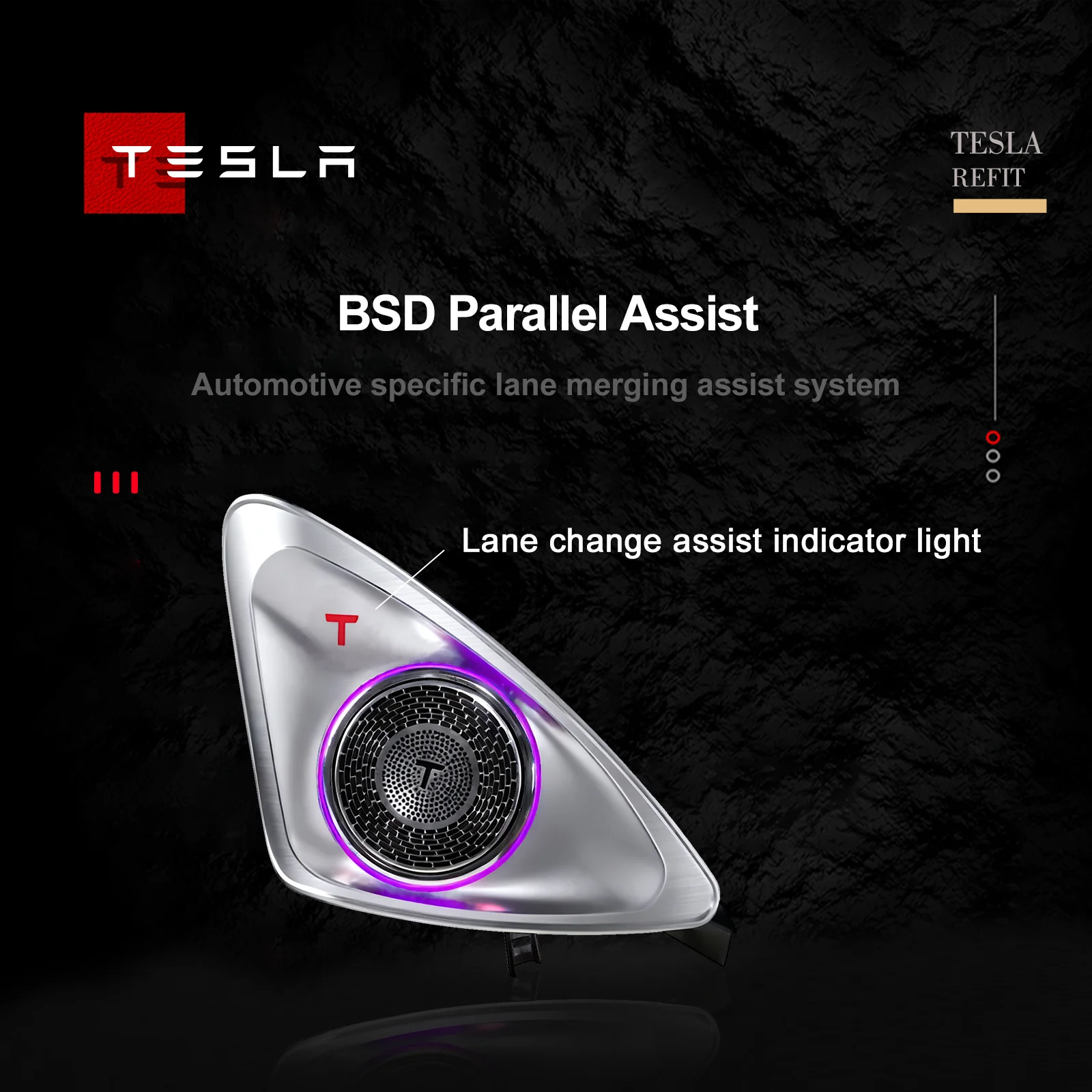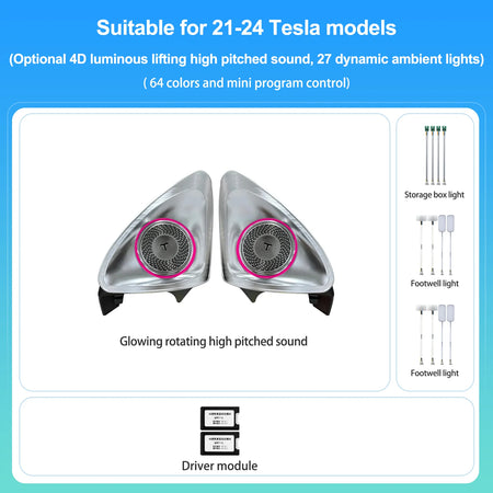 Tesla Model 3/Y 4D Rotating Hi-Fi Højttalerlys med Blind Spot Advarsel