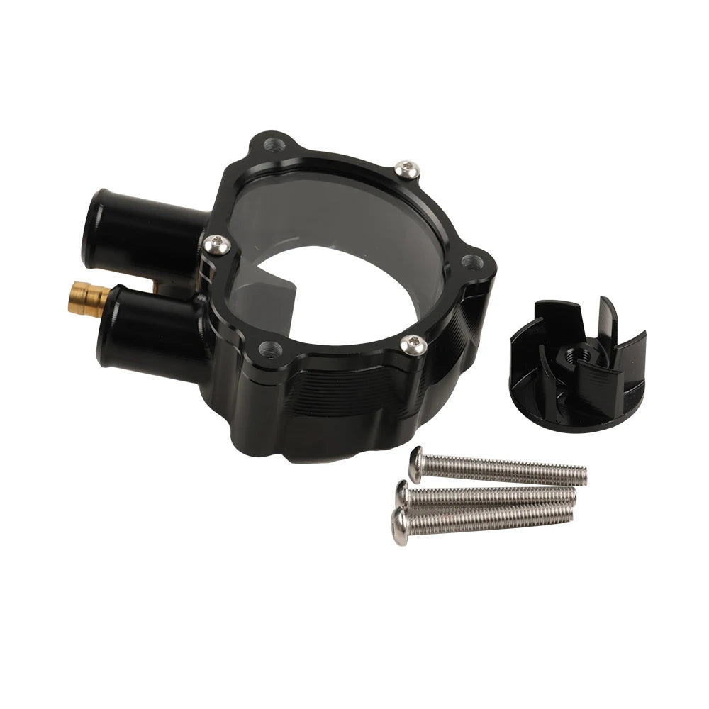 Beskytt din Vespas vandpumpe med en præcisionsfremstillet beskyttelse lavet af CNC aluminium legering. Vespa GTS/GTV Vandpumpe Dæksel Beskytter giver en holdbar skjold mod snavs, affald og mindre stød, samtidig med at motorcyklens slanke profil bevares. Denne beskyttelse er designet til Vespa GTS 200/250/300 og GTV 200/250/300 modeller og erstatter direkte det originale vandpumpe dæksel uden modifikation. Anodiseret finish sikrer langvarig farve og korrosionsbestandighed, med farvemuligheder i rød, sort eller grå for at passe til din motorcykels udseende. Farver kan se forskellige ud under varierende lysforhold og synsvinkler.