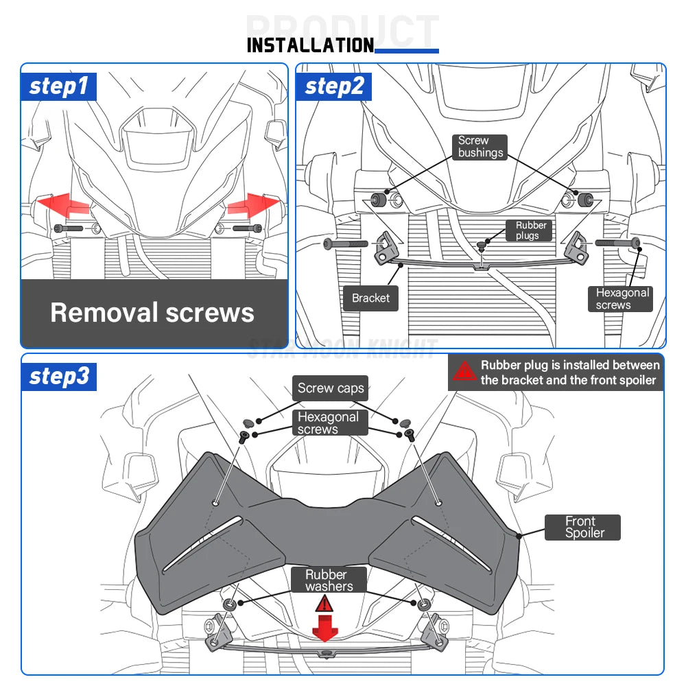 Installationen er hurtig og enkel, kræver ingen specialiseret mekanisk viden og ingen ændringer af kritiske områder. Kittet fastgøres til motorcyklen via en 3 mm tyk metalbeslag, hvilket sikrer en sikker pasform uden at kompromittere eksisterende komponenter.