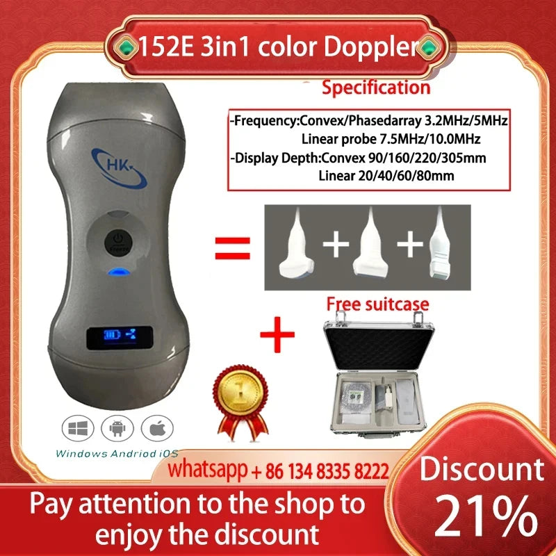 Mød 152E 3In1 Trådløs Ultralydsprobe Scanner Doppler Farve — et kompakt, kraftfuldt billeddannelsesværktøj designet til mobile klinikere. Med avanceret digital billeddannelse leverer den klare, detaljerede ultralyd på tværs af konvekse, phased-array og lineære tilstande, samtidig med at den forbliver helt trådløs, så du kan bevæge dig frit uden probekabler.