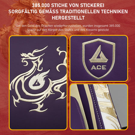 Konstrueret til lang levetid, den har en legeringsramme med håndsyet PU-læder og 8-tommer højdensitetsskum. En forbedret gasløftcylinder og robust mekanisme forlænger stolens levetid, mens 385.003 sting skaber det levende dragemønster med holdbare detaljer.