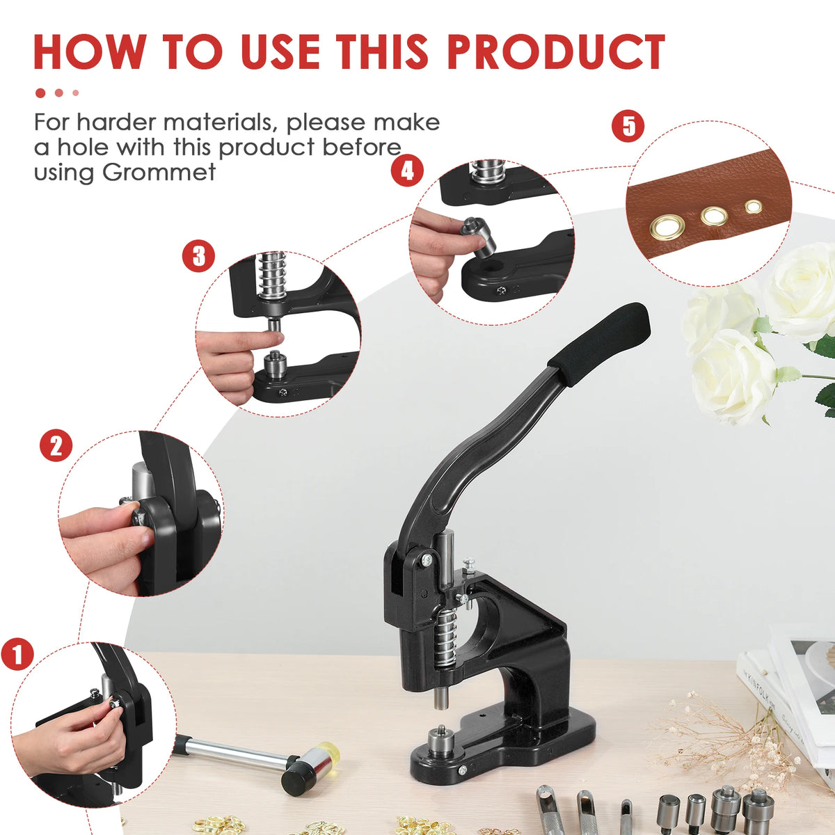 - Alsidig, multi-størrelses kapacitet: Skift mellem tre matrice (#0, #2, #4) for at passe til 1/4", 3/8" og 1/2" øskner, plus de medfølgende slagværktøjer til forskellige projekter.