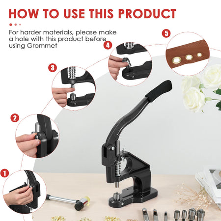 - Klar til brug til mange anvendelser: Perfekt til tøjproducenter, håndværk, skiltebutikker, bannere, gardiner, scrapbøger, korsetter, bælter, tasker, sko og mere. Værktøjet kan fastgøres på en overflade eller bruges frit for fleksible arbejdsprocesser.