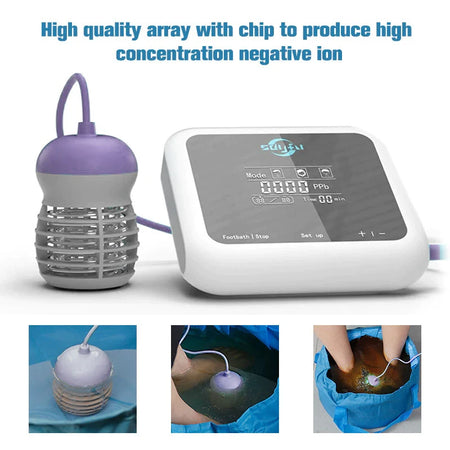 Oplev det ultimative inden for velvære med Ionic Foot Bath Detox Machine With Touch Display Foot Spa. Dette avancerede system leverer en kraftfuld ionisk detox gennem præcis elektrolyse, som hjælper med at neutralisere toksiner, øge blodcirkulationen og støtte det generelle velbefindende. Det indbyggede touch-display giver dig mulighed for at tilpasse din spaoplevelse med aldersspecifikke tilstande og en praktisk timer, samtidig med at det overvåger den ioniske koncentration for en personlig og effektiv rensning. Kompakt, bærbar og designet til hjemme- eller professionel brug, det er den perfekte tilføjelse til enhver spa-rutine eller wellness-praksis.