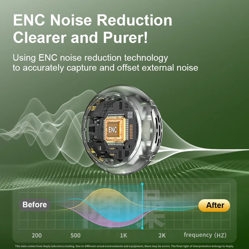 - Støjdæmpende Teknologi: Den avancerede ENC (Environmental Noise Cancellation) funktion minimerer baggrundsstøj, hvilket sikrer skarp og klar lydkvalitet.
