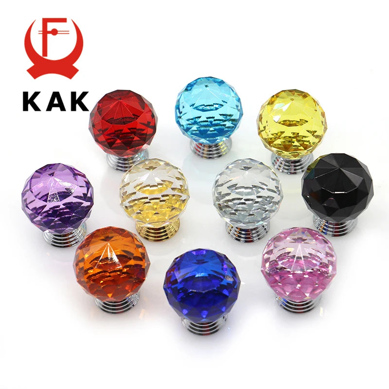 Kak 30mm Krystalglas Knopper Skabshåndtag Farverige Kugle