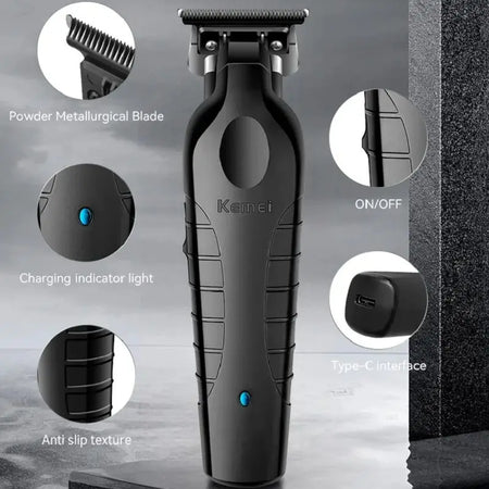 Kemei trådløs hårklipper med rustfrit stålblad, USB genopladelig