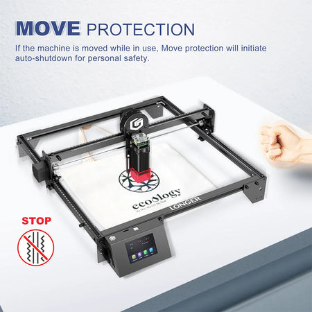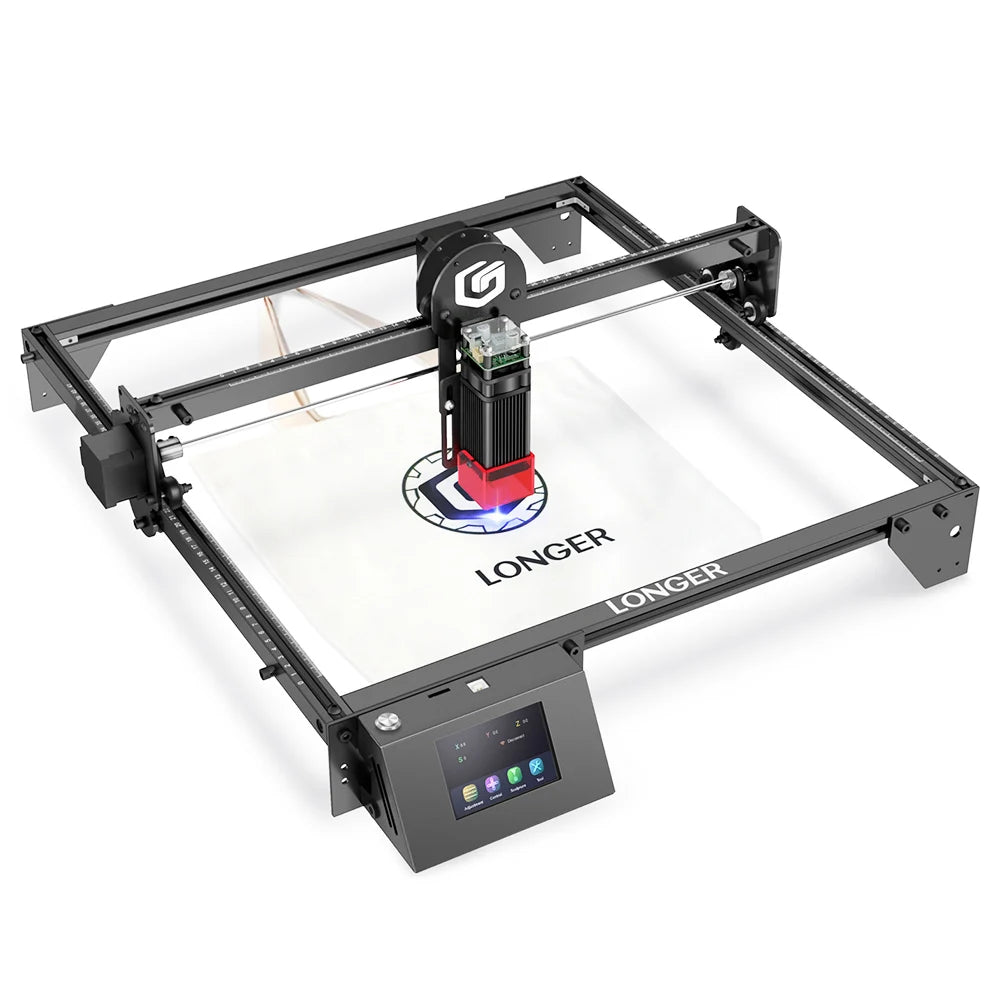Opdag Longer Ray5 5,5W Diode Laser Gravør, en kompakt, højpræcisionsmaskine designet til hobbyister og små studier. Med et arbejdsområde på 410 x 410 mm, en 5,5W diodelaser ved 450 nm og en ultrafin 0,08 x 0,08 mm spotstørrelse leverer den skarpe graveringer og rene snit på træ, papir og plastik. Ray5 kører på en 32-bit ESP32 chipset og tilbyder både offline gravering via et TF-kort og online kontrol over WiFi, så du kan designe på din computer eller arbejde helt selvstændigt.