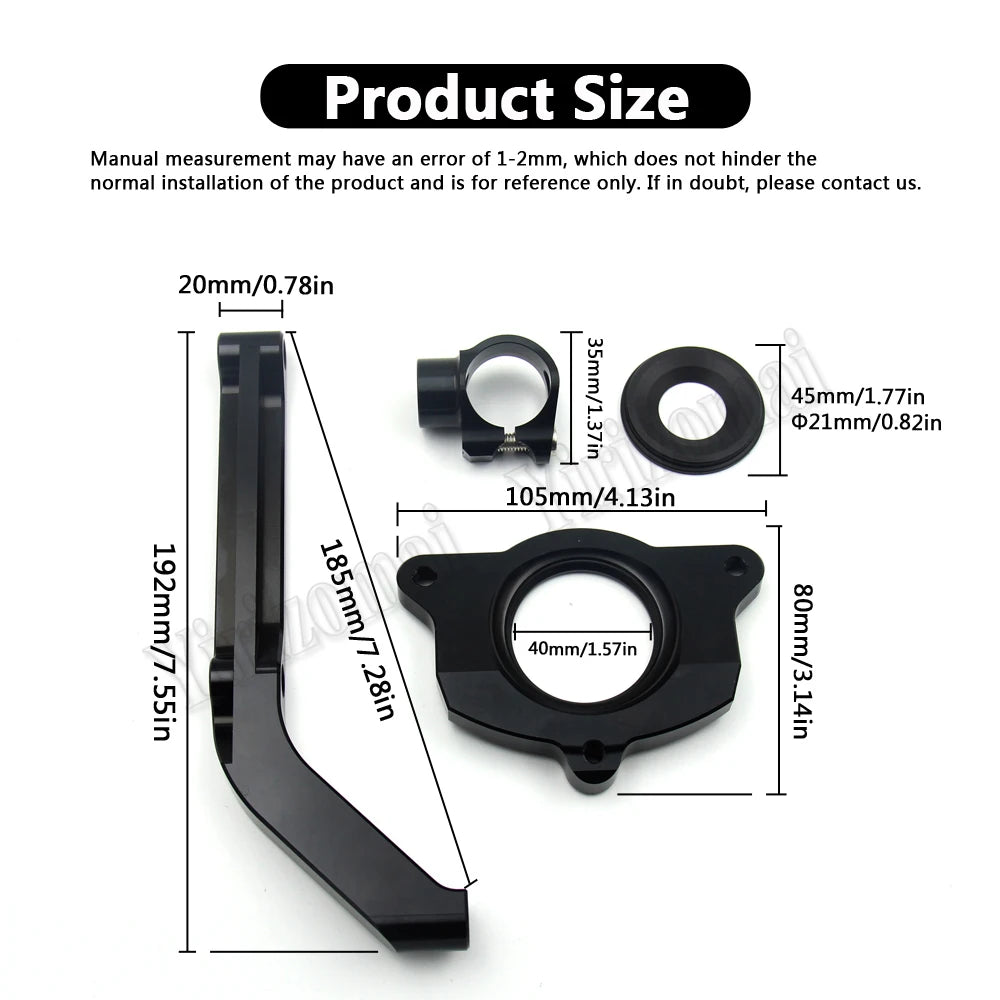 - Tip: Efter installation, drej styret helt til højre og venstre for at bekræfte, at der er nok plads til dæmperens funktion, og sørg for, at dæmpersættet ikke forstyrrer olietanken eller andre komponenter. Hvis pladsen er trang, flyt dæmperen horisontalt for at passe korrekt.