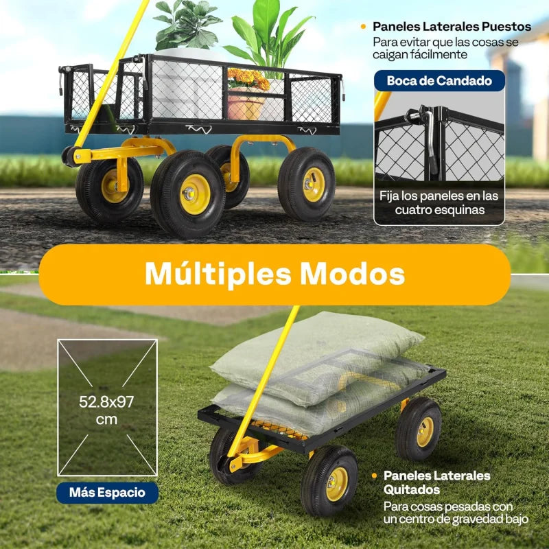 Havevogn 400 kg kapacitet med aftagelige sider og pneumatiske hjul