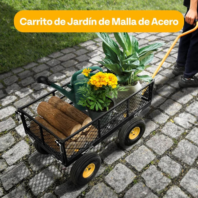 Mød VIVOHOME Havevogn, en robust transportløsning designet til at flytte laster op til 400 kg med lethed. Dens solide, robuste jernramme, aftagelige sider og pneumatiske hjul gør havearbejde hurtigere og mindre trættende, uanset om du transporterer jord, værktøj, brænde eller haveaffald. Vognen leveres med enkel montering, hvilket sparer plads og lader dig konfigurere den til at passe ind i trange rum. Den sorte finish giver holdbarhed mod elementerne, så du kan stole på den sæson efter sæson.
