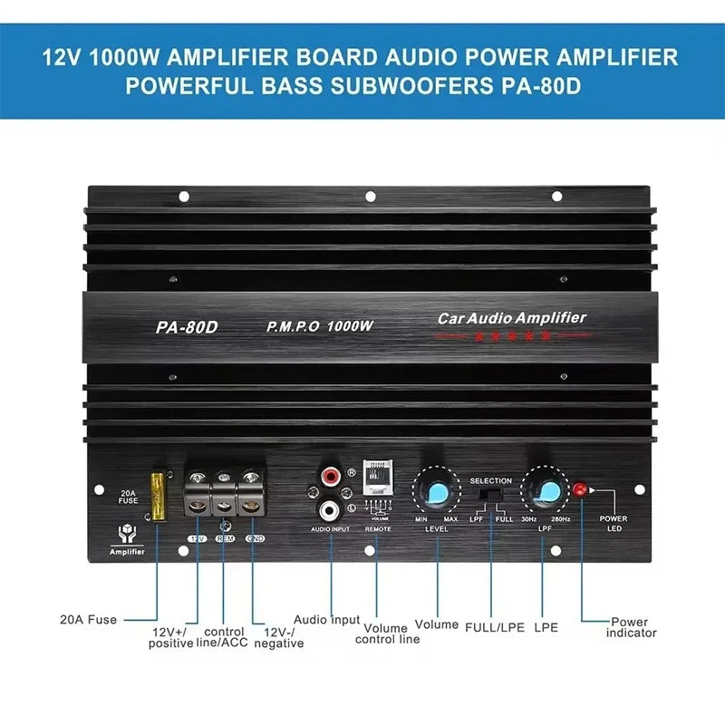 PA-80D Universal Bil Forstærker Board, 12V 1000W Mono Bil Audio