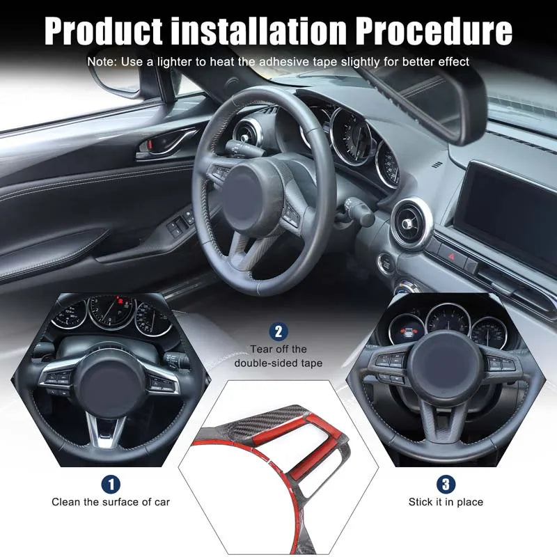 Opgrader dit Mazda MX-5 ND interiør med den ægte kulfiber rammestyring, en premium dekorativ ring designet til 2016-2025+ modeller. Fremstillet af ægte kulfiber tilføjer den et sofistikeret, high-tech udseende samtidig med at den beskytter interiøret mod ridser omkring ratområdet.