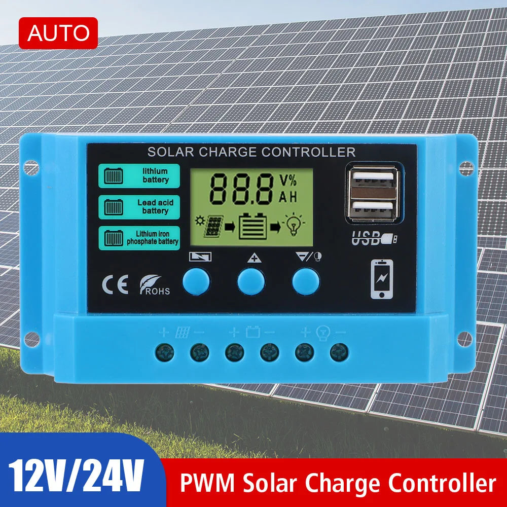30A Solcelle Laderegulator med LCD Skærm, PWM, 12V/24V Universel