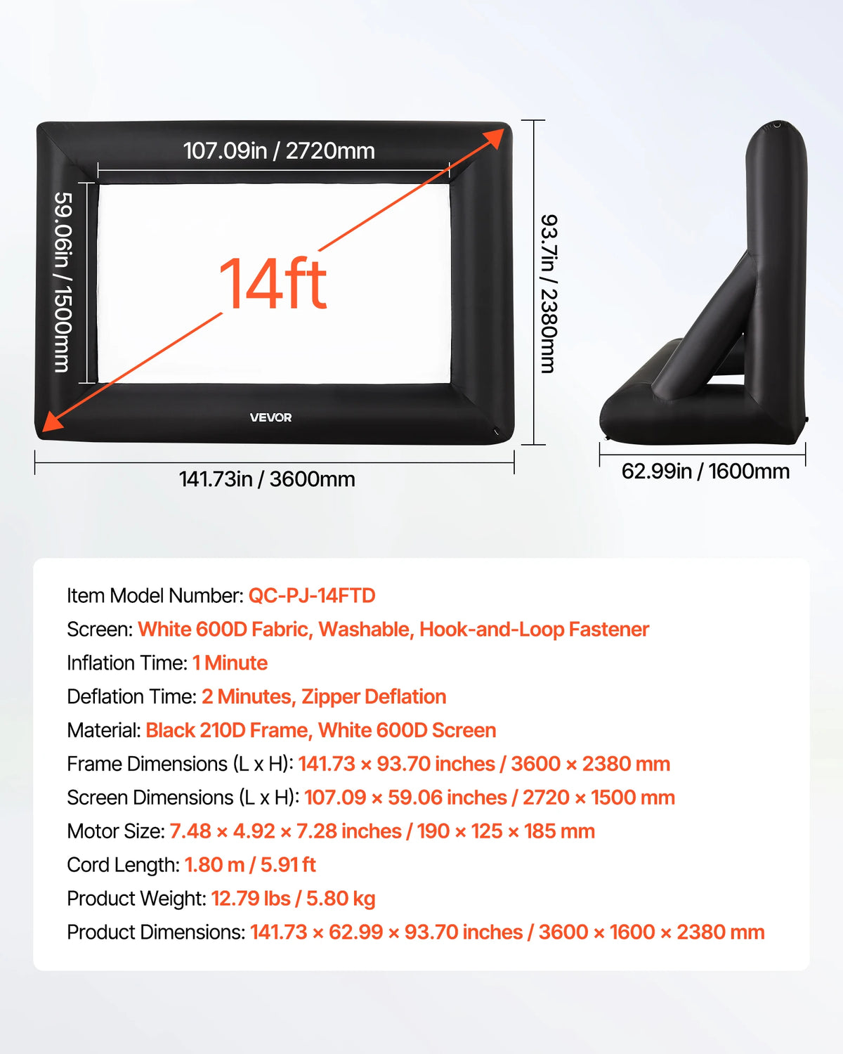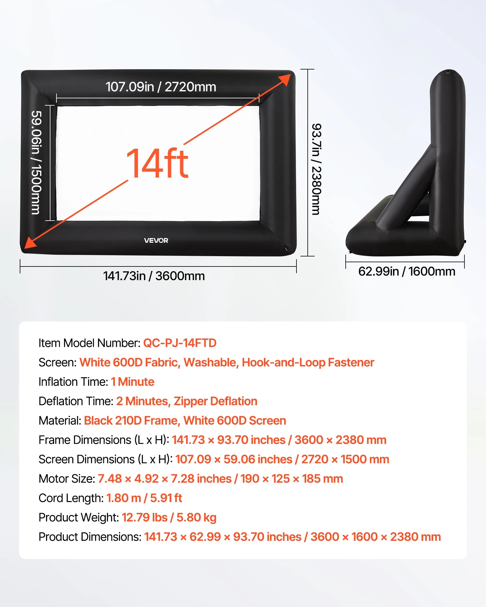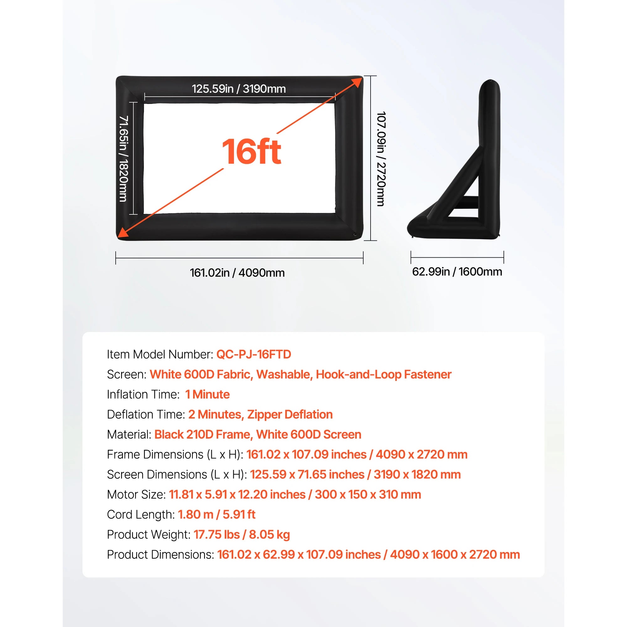 Opsæt med lethed og oplev en uforglemmelig visuel præsentation med SucceBuy oppustelige udendørs projektorskærm. Denne rummelige gulvskærm er ideel til filmaftener i haven, udendørs præsentationer, sportsbegivenheder og immersive gaming-sessioner. Fås i bredderne 14 ft, 16 ft og 20 ft, den giver en stor, lys projektionsoverflade, der forbedrer enhver projektor i 16:9 format.