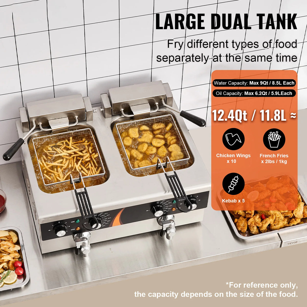 2 x 9QT Dobbelt Tank Elektrisk Bordfryer