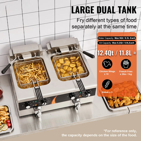- 1 x 2 x 9QT Dual Tank Electric Countertop Fryer