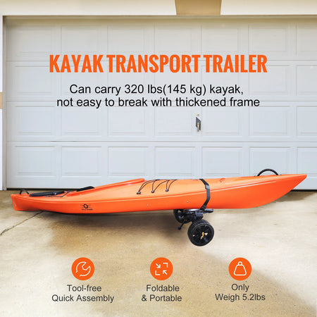Transporter nemt din kajak med 320lbs Kajakvogn Aftagelig Trolley med Ti Tommer Dæk. Denne robuste, men letvægtsvogn er lavet af holdbar aluminiumlegering og er designet til at håndtere op til 320 lbs / 145 kg, hvilket giver dig en pålidelig måde at flytte kajakker, kanoer, Jon-både, paddleboards og flydende måtter med mindre belastning og mere kontrol. Den lastbærende ramme er udvidet til 485 mm for en stabil, sikker pasform på en række forskellige vandfartøjer.