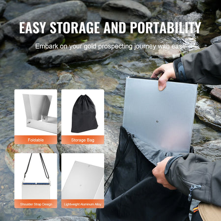 Klar til brug i strømme, bække og testhuller — ideel til feltarbejde og hobbyprojekter. Tilføj SucceBuy 50 Inch Sluice Box Kit til dit udstyr og begynd at genvinde guld i dag — pålidelig ydeevne og brugervenlighed til hver udflugt. 2-års garanti.