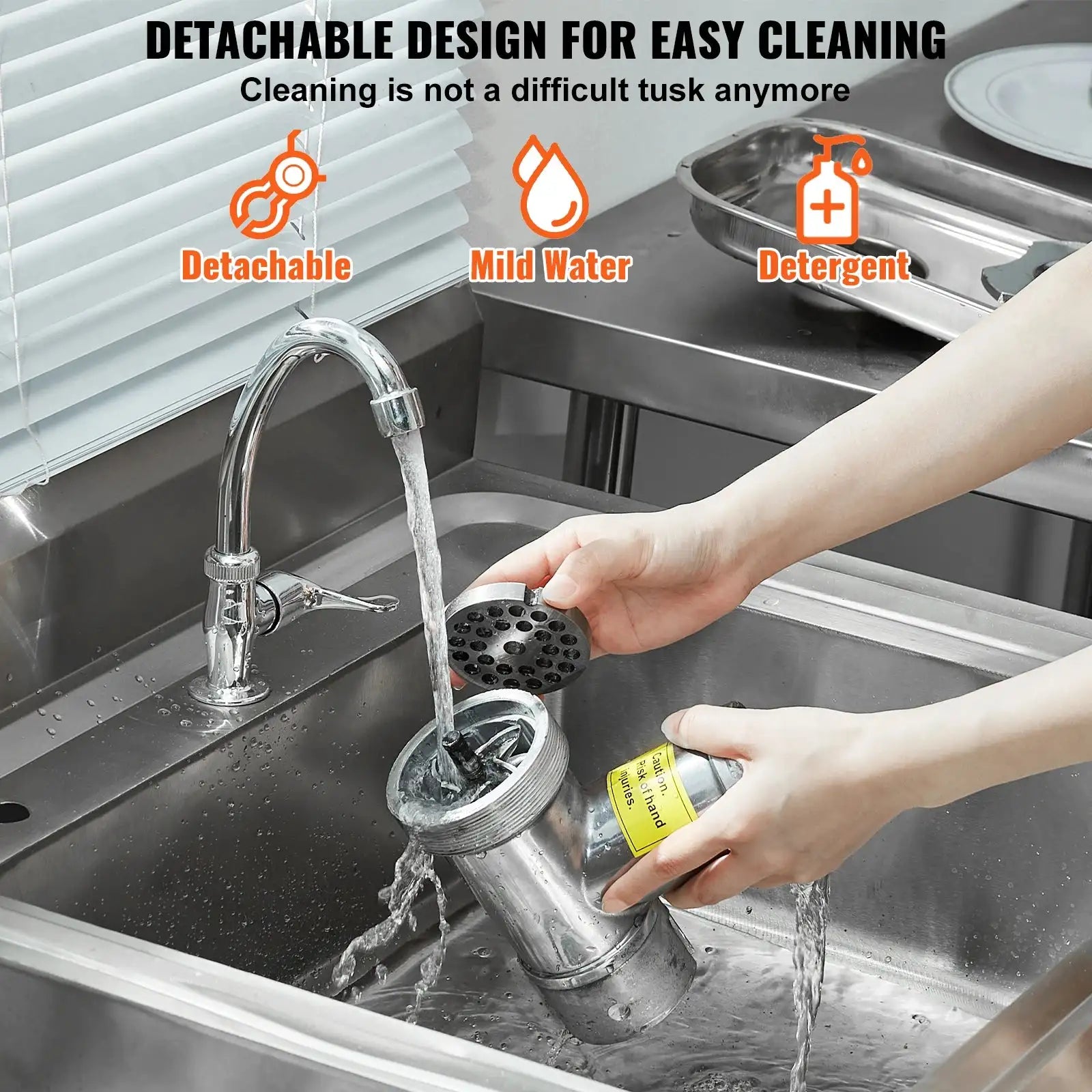 Succebuy kværnen er designet til kontinuerlig drift, hvilket gør den ideel til store behov for kødkværning. Aftagelige dele er nemme at rengøre efter brug, og med korrekt tørring forbliver enheden korrosionsbestandig og klar til næste skift. Denne multifunktionelle maskine kværner ikke kun kød effektivt, men fungerer også som en dygtig pølsemager til travle kommercielle køkkener.