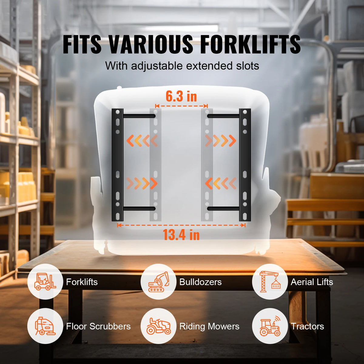 - Udvidet slotjusterbarhed: Sædet tilbyder en justerbar slot fra 6.3" til 13.4", hvilket muliggør hurtig tilpasning til forskellige gaffeltruck størrelser og nem omkonfiguration, når du skifter maskiner.