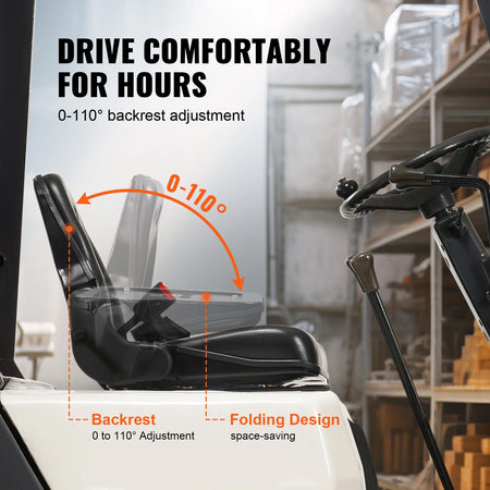 Oplev forbedret kørekomfort med Forklift Seat Fold Down Adjustable Back Comfort. Dette universelle gaffeltruck sæde er designet til at passe til en bred vifte af gaffeltrucks - fra små elektriske modeller til store LPG-maskiner - og leverer overlegen støtte, nem opbevaring og forbedret effektivitet i travle lagre.