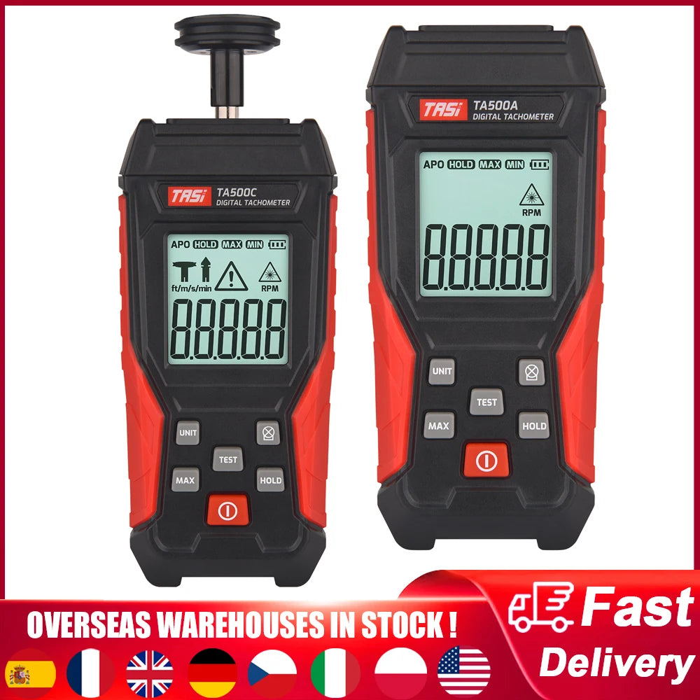 - TA500C: Non-kontakt 3–100000 RPM; Kontakt 3–19999 RPM, 0–39999 m, 0–1999.9 m/min, 0–39999.9 ft/min