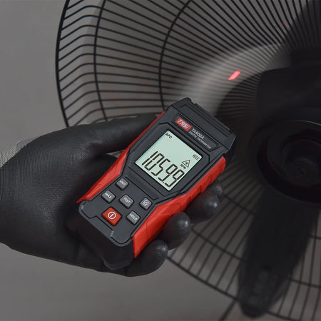 - Non-kontakt RPM tjek holder dine hænder væk fra bevægelige dele, mens der leveres hurtige, præcise aflæsninger på afstand.