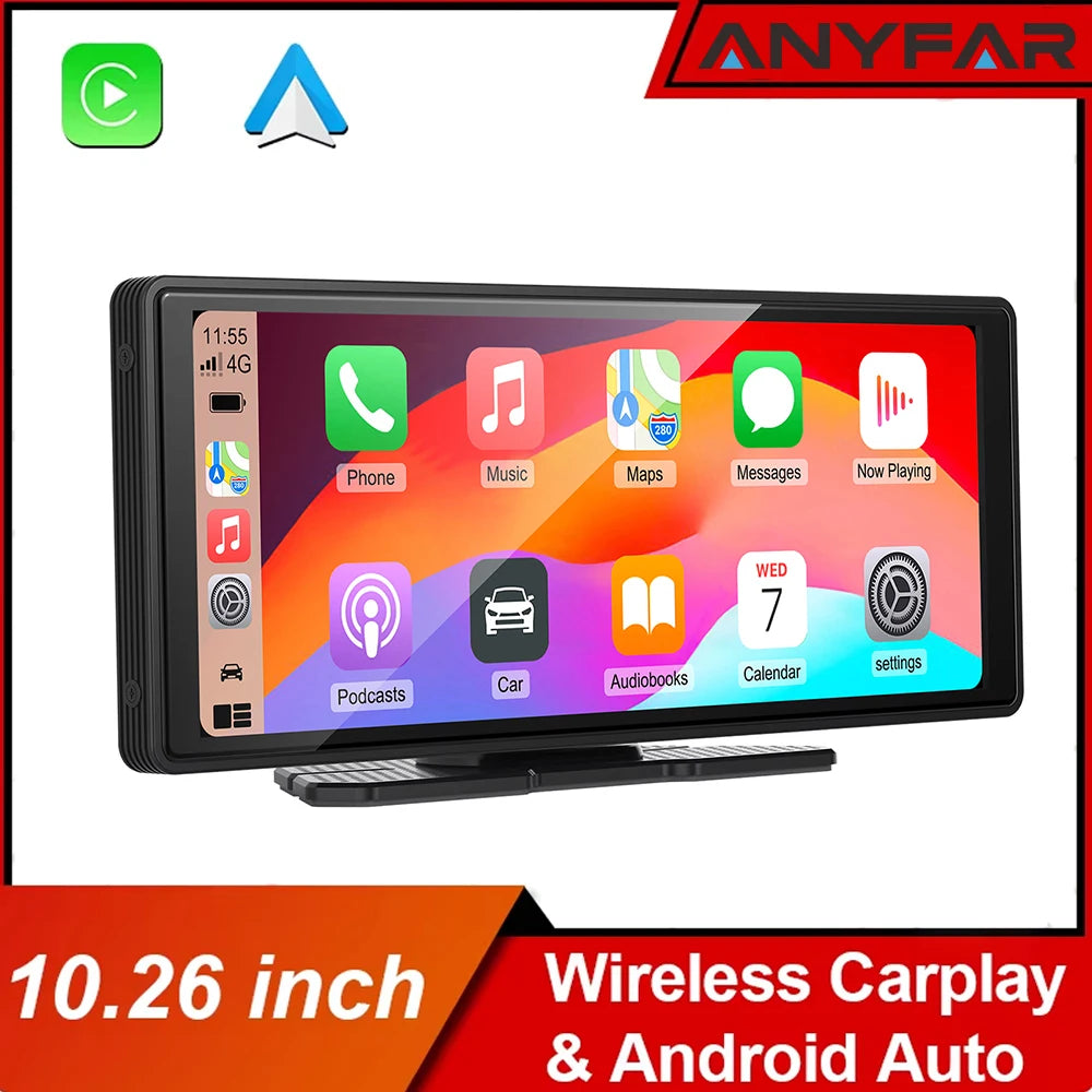 10,26 tommer IPS bilstereo med Android Auto og trådløs CarPlay