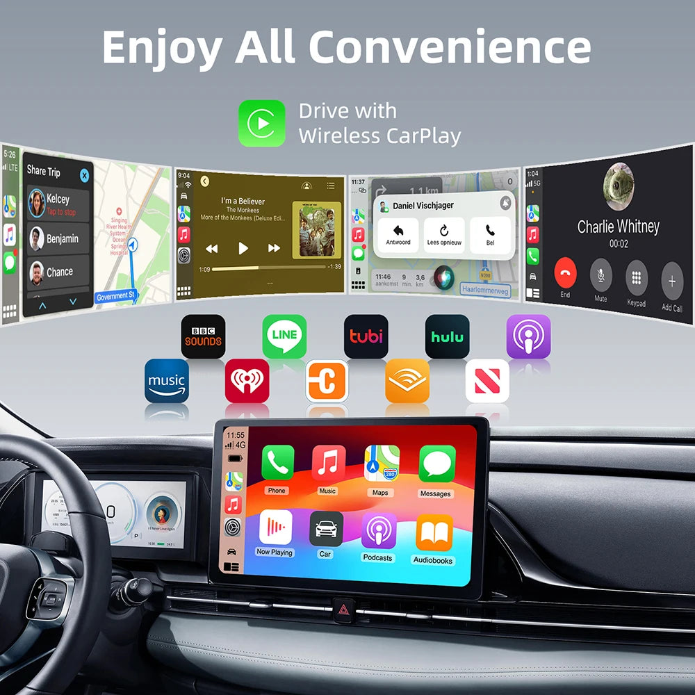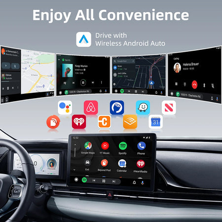 Med 5.8GHz WiFi får du en stabil, lav-latens forbindelse til navigation, musik og håndfri kontrol. Trådløs CarPlay giver dig adgang til kort, beskeder, opkald og Siri uden at skulle tilslutte din iPhone til køretøjet, mens trådløs Android Auto bringer Google Assistant, kort og kompatible apps til din kørsel - alt sammen uden at skulle tilslutte. Enheden understøtter også OTA-opgraderinger, så du vil modtage firmwareforbedringer og nye funktioner, efterhånden som de bliver frigivet.