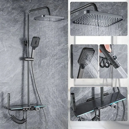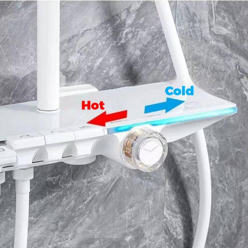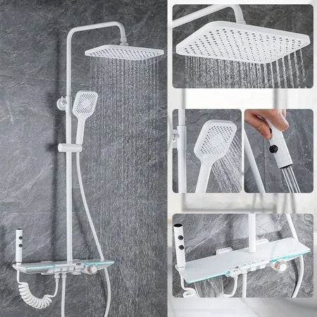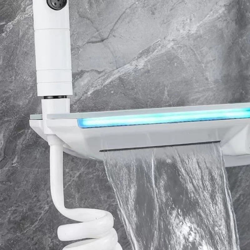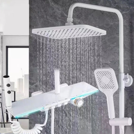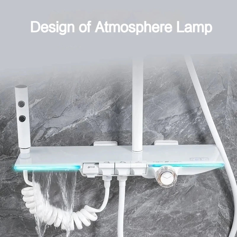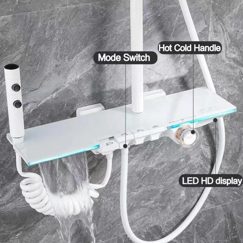 Opgradering Hvid Hot Cold Badeværelse Bruser Sæt med LED Display Klaver Taster Bad Bruser Regn Bruser Vandhane Badeværelse Tilbehør Messing