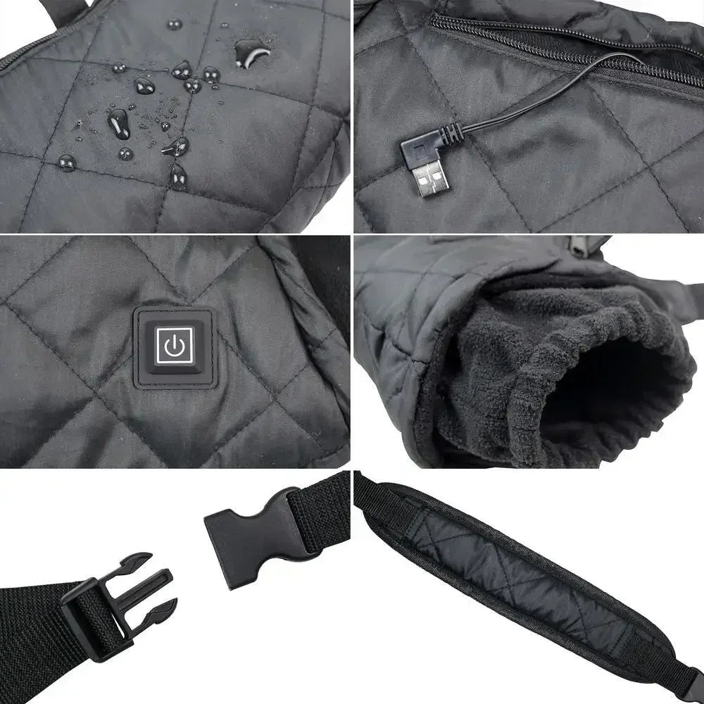 Tre temperaturniveauer lader dig hurtigt hæve varmen for at bekæmpe bidende vind, sne eller fugtig kulde, mens vindafvisende, fleeceforede manchetter forsegler varmen. Handskerne er bløde og elastiske for fuld fingerfærdighed, så du kan gribe stænger, skistave eller udstyr uden at føle dig begrænset. En blød bred skulderrem lader dig hænge dem om halsen, når de ikke er i brug, så varmen er inden for rækkevidde. Fremstillet af vandtæt quiltet bomuld med en polyester/nylon indvendig, er disse handsker designet til vintereventyr—jagt, camping, fiskeri, cykling, skiløb, ridning og vandreture. De er universel størrelse og unisex, tilbydes i sort, khaki, grøn camouflage, rør camouflage og ny blad camouflage. Opvarmningen afhænger af en ekstern USB powerbank (ikke inkluderet); varmelegemet fungerer ved 5V, cirka 0,8A, og leverer cirka 4,5W strøm. For bedste resultater, par med en powerbank med højere kapacitet—jo større kapacitet, jo længere varer varmen. For eksempel kan en 10.000mAh powerbank give høj varme i cirka 6 timer, mellem varme i cirka 8,5 timer, eller lav varme i cirka 12 timer.