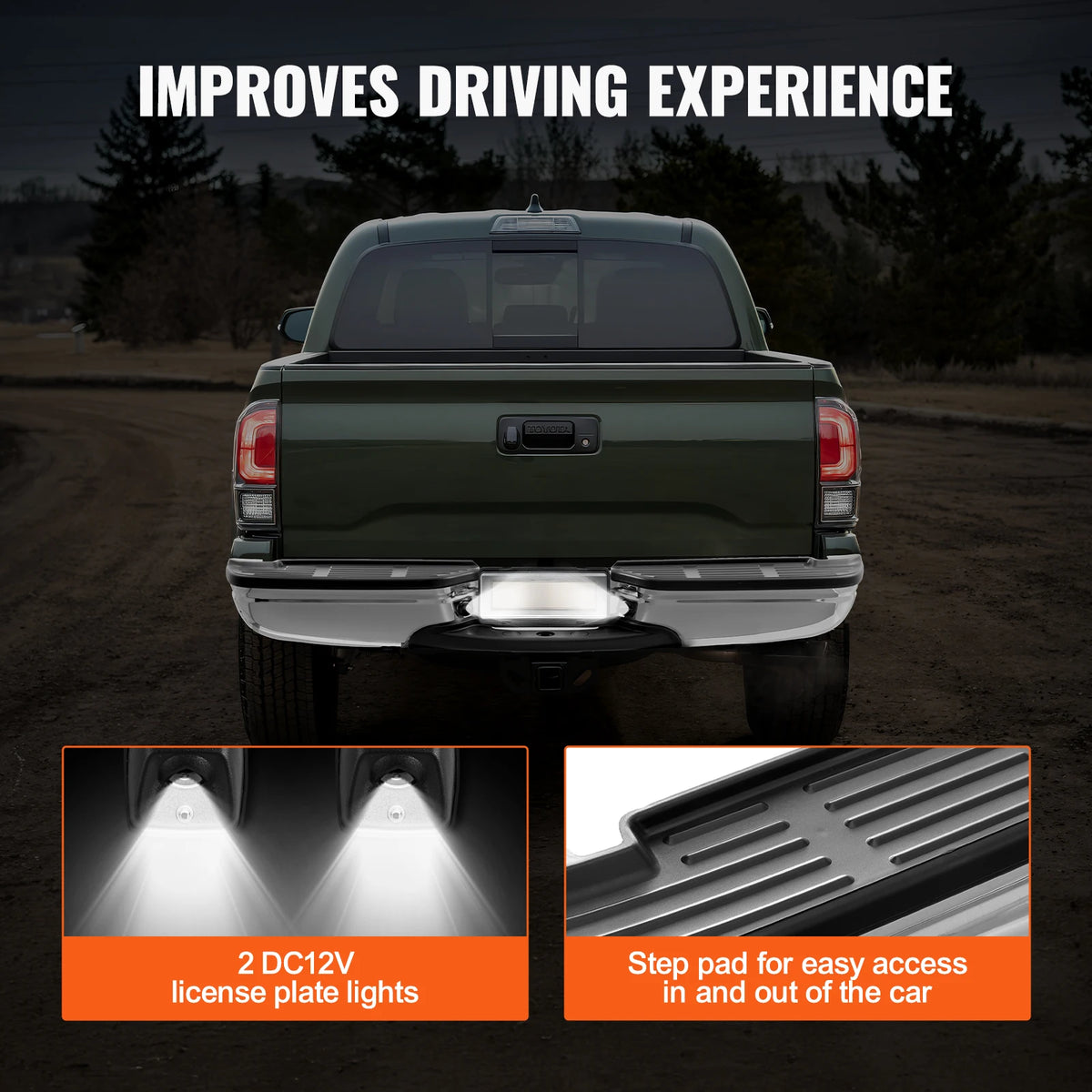 - 2 DV12V nummerpladelygter forbedrer synlighed og overholdelse under natkørsel.