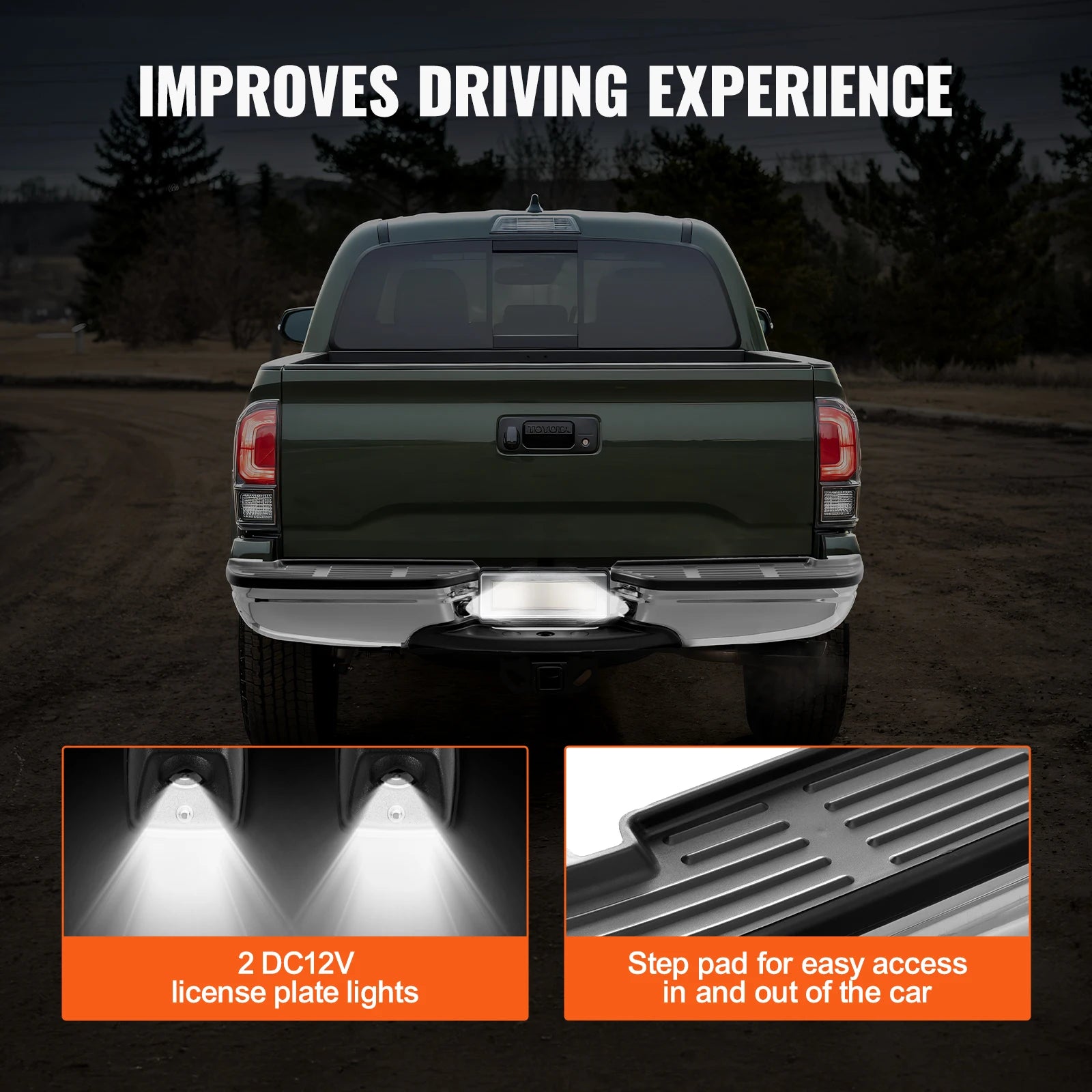 - Tilbyder forbedret bageste beskyttelse, mens den tilføjer en praktisk, skridsikker trinoverflade for lettere adgang til truckbunden eller anhængerområdet.