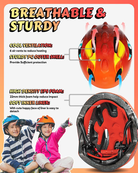 - Ideel til cykelture, balancecykler og rulleskøjteløb—tilbyder hoved- og ledbeskyttelse på hver eventyr.