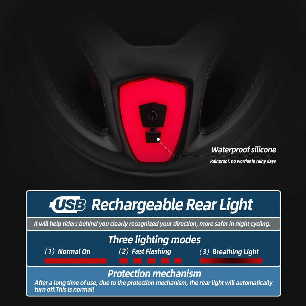 - In low light or at night, the USB LED light boosts visibility so drivers notice you from a distance.