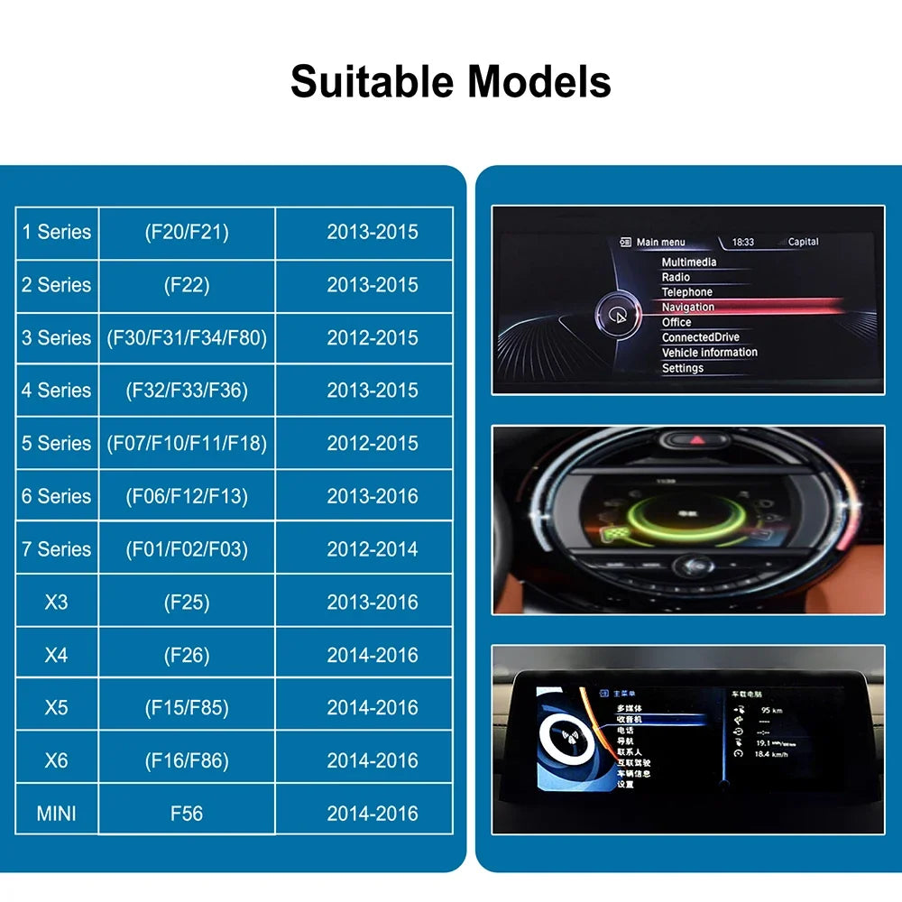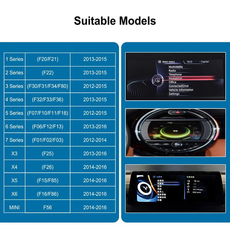 BMW NBT CarPlay-interface med Android Auto og Mirror Link er en eftermonteringsløsning designet til at bringe moderne kørebehov til dit BMW NBT-system uden at gå på kompromis med bilens oprindelige udseende og følelse. Den bevarer den eksisterende instrumentbrætdisplay, rotary-controller og ratkontroller, hvilket giver en problemfri, OEM-lignende integration, der gør smartphone-tilslutning ubesværet på hver køretur.