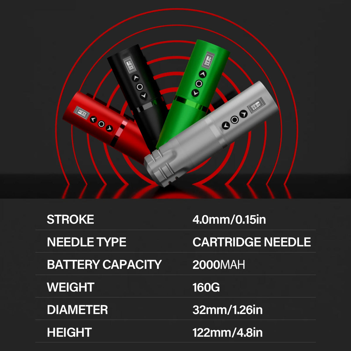 - Letvægts, men robust aluminiumkonstruktion hjælper med at reducere håndtræthed under lange tatoveringssessioner.