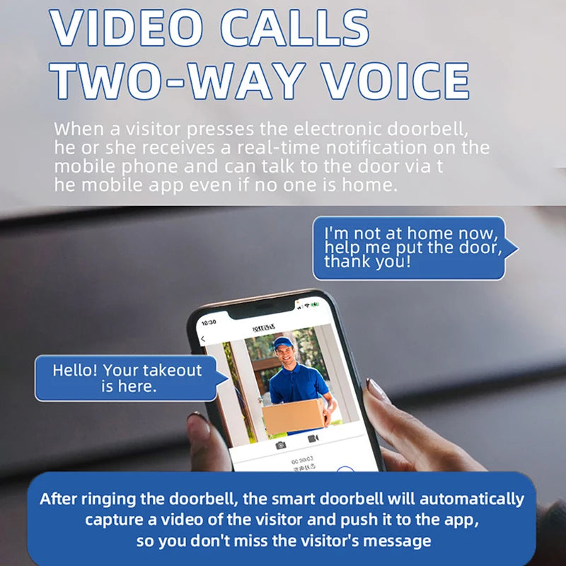 Fordele — Denne dørklokke forbedrer hjemmets sikkerhed ved at levere realtidsvideo og bevægelsesalarmer til din enhed, reducerer strøm bekymringer med solassisteret opladning og strømliner besøgsbehandling med klar tovejs lyd. Holdbar og nem at installere, den passer til moderne smart-home behov, mens den sparer energi.