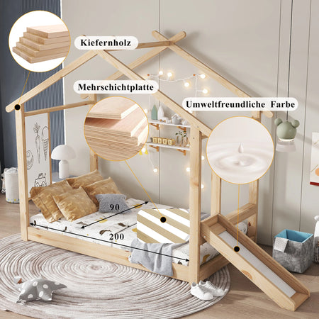 Mød Wooden Single Kids Bed With Slide And Whiteboard i en naturlig finish, designet til glædelig søvn og fantasifuld leg. Denne seng på 90x200 cm kombinerer sjov og funktion med et integreret skrivbart whiteboard—perfekt til hurtige noter, kruseduller eller godnathistorier. En robust lamelbund sikrer behagelig støtte til voksende børn, mens det legende tagdesign vækker magiske eventyr i ethvert børneværelse. Den indbyggede rutsjebane tilføjer daglig spænding og forvandler overgangen fra opvågning til leg til dejlige øjeblikke. Den naturlige farve passer til enhver indretning, og størrelsen 90x200 cm giver rigelig plads til hvile og drømmefyldte lure. Let at samle med detaljerede instruktioner og komplette dele, så du kan nyde sengen så hurtigt som muligt.