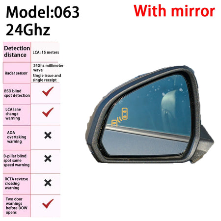 Radar advarselssystem til Ford Mustang S650 2024 2025 med blindvinkelovervågning og sikkerhedsadvarsler