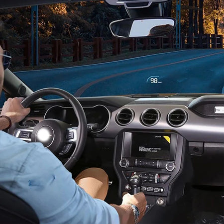 Forbedr din Ford Mustang S550 oplevelse med det 5-tommer HUD Head Up Display, der har en klar hastighedsmålerprojektion. Denne kompakte enhed spejler din bils indbyggede computerdata og projicerer væsentlige oplysninger direkte på din forrude, hvilket hjælper dig med at holde øjnene på vejen, hvor de hører hjemme. Ved at vise hastighed og andre vigtige målinger i dit synsfelt minimerer det behovet for at se væk fra vejen—hvilket forbedrer reaktionstiden, komforten og den samlede sikkerhed under daglig kørsel, motorvejsrejser og natkørsel.