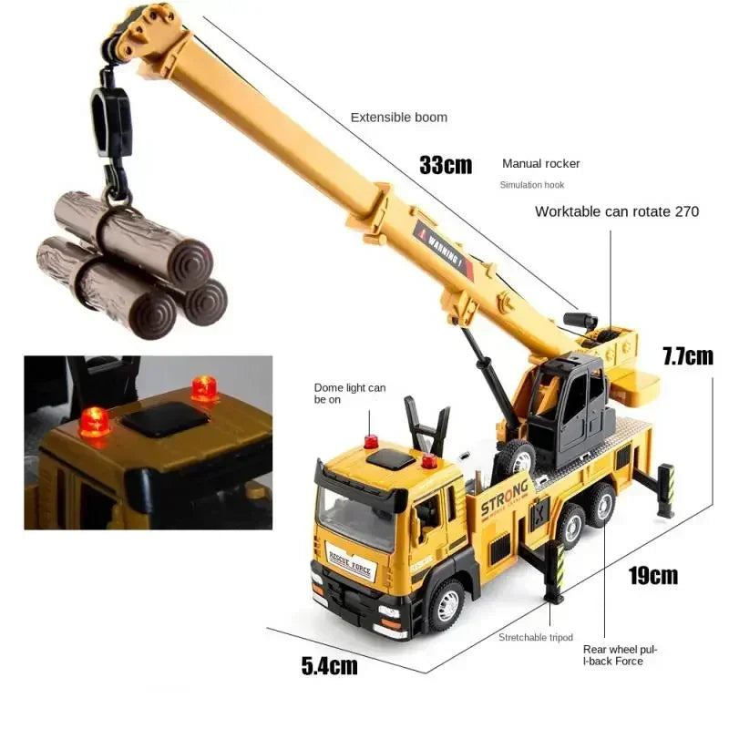 1/32 Κράμα φορτηγού γερανού Μηχανικά οχήματα με ήχο και φως Μεταλλικά μοντέλα αυτοκινήτων Προσομοίωση Χυτά μοντέλα Παιδικό παιχνίδι δώρο
