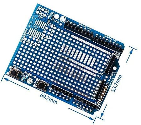 Δημιουργήστε τα πρωτότυπά σας χωρίς κόπο με το Mini Breadboard Prototyping Prototype Shield ProtoShield. Αυτός ο ευέλικτος πίνακας έρχεται εξοπλισμένος με όλα όσα χρειάζεστε για να ξεκινήσετε τα έργα σας, από LEDs μέχρι κυκλώματα με κουμπιά. Είτε προτιμάτε να κολλήσετε τα εξαρτήματα απευθείας είτε να χρησιμοποιήσετε το mini breadboard, αυτός ο πίνακας προσφέρει ευελιξία για τις ανάγκες πρωτοτυπίας σας. Θυμηθείτε να χειρίζεστε τα εξαρτήματα με προσοχή κατά τη διάρκεια της συναρμολόγησης για να αποφύγετε ζημιές. Ετοιμαστείτε να δώσετε ζωή στις ιδέες σας με αυτήν την καινοτόμο λύση πρωτοτυπίας!