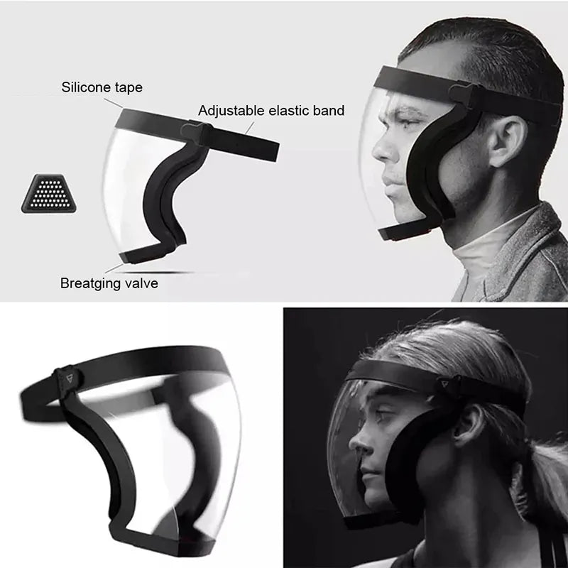Διαφανής Προστατευτική Μάσκα Πλήρους Προσώπου Ανθεκτική στη Σκόνη και στην Ομίχλη Κάλυμμα Κεφαλής Επαναχρησιμοποιούμενη Ανθεκτική στο Λάδι της Κουζίνας Μάσκα Προσώπου με Φίλτρα