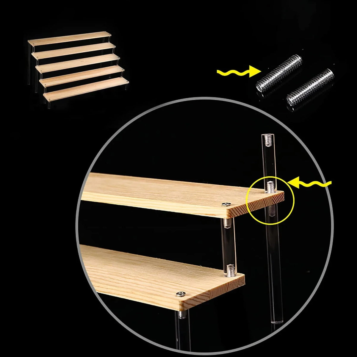Βάση προβολής από ακρυλικό και συμπαγές ξύλο 1-5 επιπέδων με διαυλείς κολώνες για άρωμα, καλλυντικά, μοντέλα αυτοκινήτων και παιχνίδια