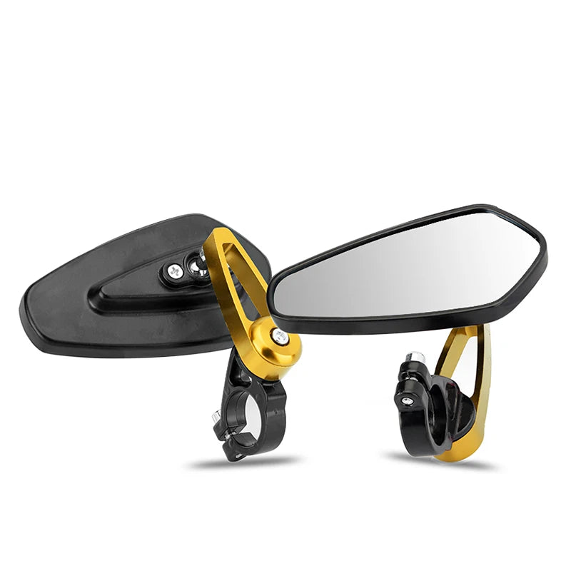 Αναβαθμίστε τη διαδρομή σας με τους Καθρέφτες Μοτοσυκλέτας 7/8 Ίντσας Universal Bar End από μέταλλο. Κατασκευασμένοι από CNC αλουμίνιο με κυρτό γυαλί, αυτοί οι καθρέφτες προσφέρουν μια ανθεκτική, μακροχρόνια κατασκευή που αντέχει στην καθημερινή οδήγηση. Ο ευρυγώνιος κυρτός σχεδιασμός περιστρέφεται 180 μοίρες, εξαλείφοντας τα τυφλά σημεία και επιτρέποντάς σας να ρυθμίσετε για την πιο καθαρή θέα χωρίς να γυρίσετε πίσω. Ταιριάζουν σε στάνταρ 7/8" κοίλα τιμόνια, καθιστώντας τους μια ευέλικτη αναβάθμιση για σπορ μοτοσυκλέτες, δρόμου, vintage και άλλα. Διαθέσιμοι σε κόκκινο, μπλε, χρυσό και μαύρο για να ταιριάζουν με την προσωπικότητα της μοτοσυκλέτας σας. Απλοί στην εγκατάσταση στις περισσότερες ρυθμίσεις — μερικά σπειρωτά τιμόνια μπορεί να απαιτούν μικρές τροποποιήσεις για ομαλή εφαρμογή. Ο καθαρός φακός γυαλιού παρέχει μια αδιατάραχτη θέα της κυκλοφορίας πίσω σας, βελτιώνοντας την ασφάλεια σε κάθε διαδρομή.
