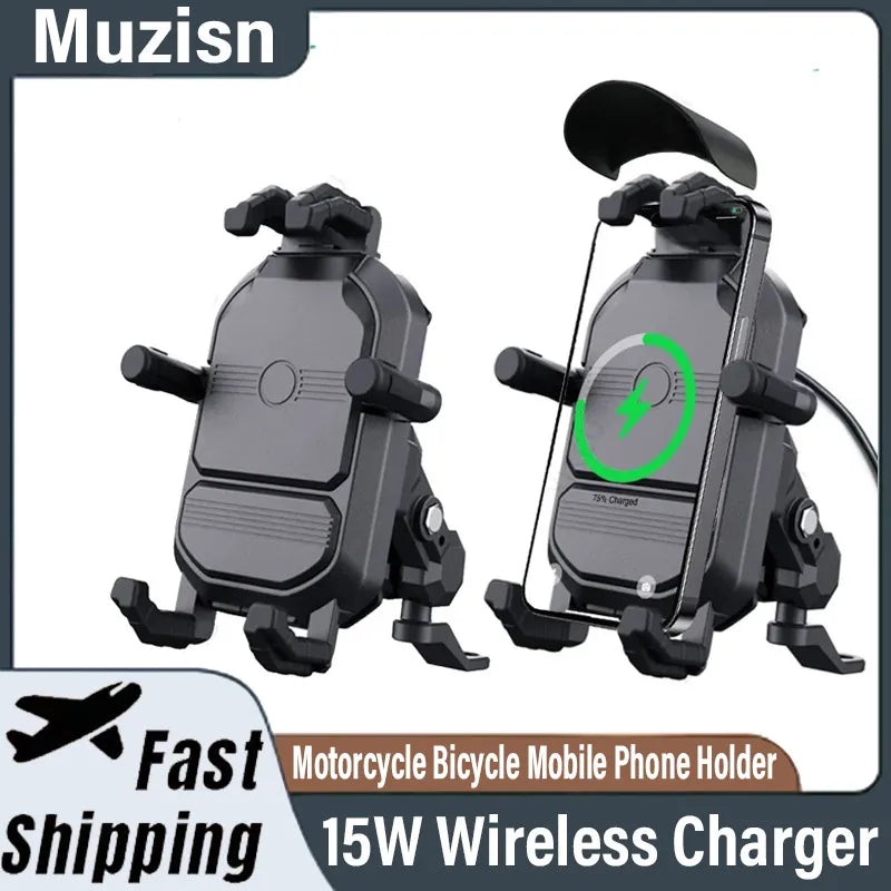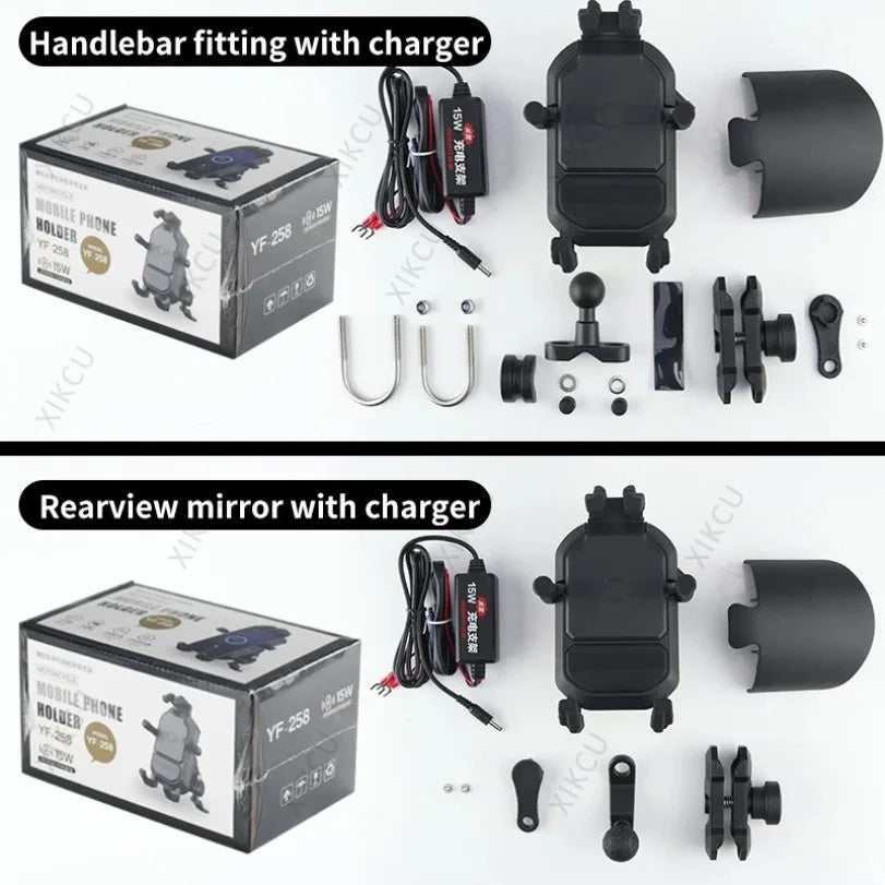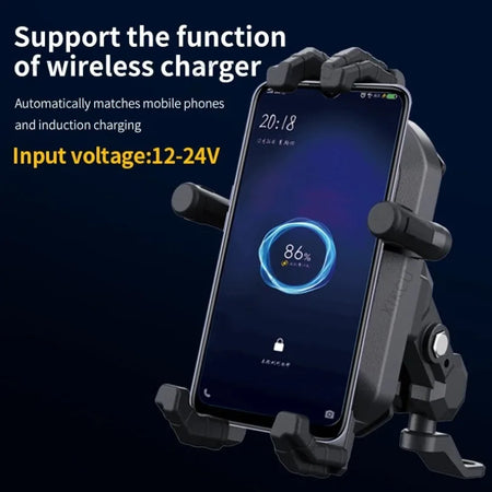 Βάση Κινητού για Τιμόνι Μοτοσυκλέτας με Ασύρματο Φορτιστή 15W, Αντι-κρούση
