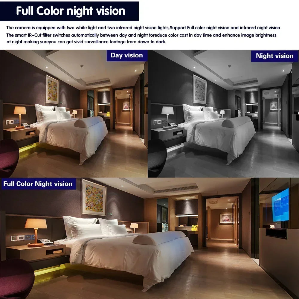 Παραμείνετε ασφαλείς μέρα και νύχτα με Πλήρη Χρωματική Νυχτερινή Όραση και μια ισχυρή IR Απόσταση 40-50M. Η Ανίχνευση Ανθρώπινης Κίνησης AI και η Έξυπνη Παρακολούθηση της κάμερας εξασφαλίζουν ότι δεν χάνετε καμία στιγμή, ενώ η Δύο Κατευθύνσεις Ήχου σας επιτρέπει να επικοινωνείτε με ευκολία.